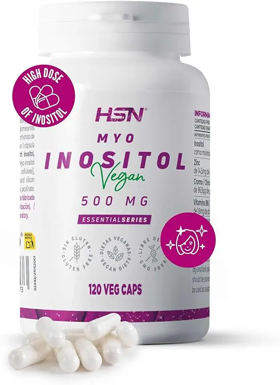 El inositol ayuda a regular el sistema nervioso y el equilibrio hormonal. Puede ser útil en ansiedad, insomnio y estrés, y está especialmente indicado en problemas hormonales femeninos como el síndrome de ovario poliquístico o ciclos irregulares.